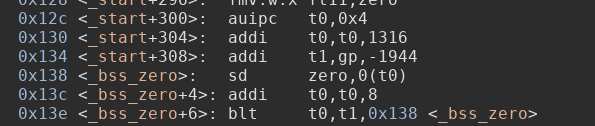 la t0, _bss_start # 0x12c, 0x130 使用pc相对位置得到_bss_start